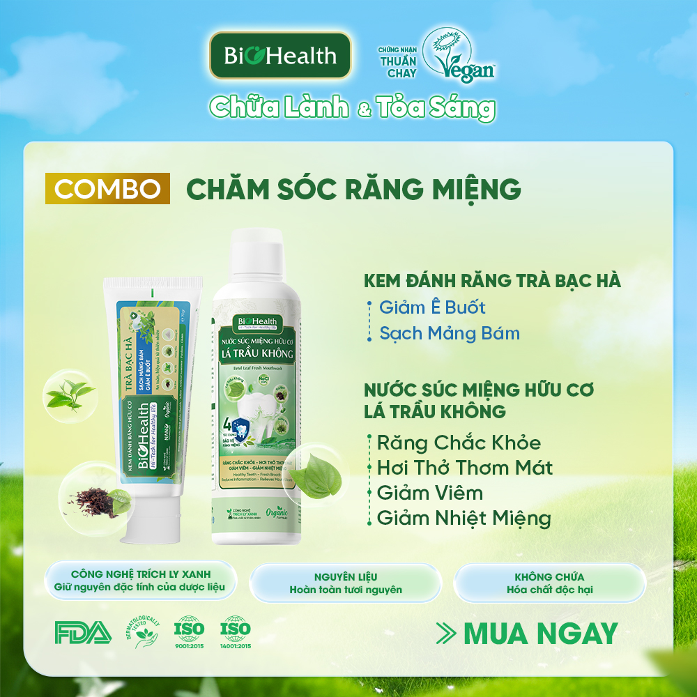 | Tiêu chí | Biohealth Trà Bạc Hà + Lá Trầu Không | Sản phẩm răng miệng phổ biến |
