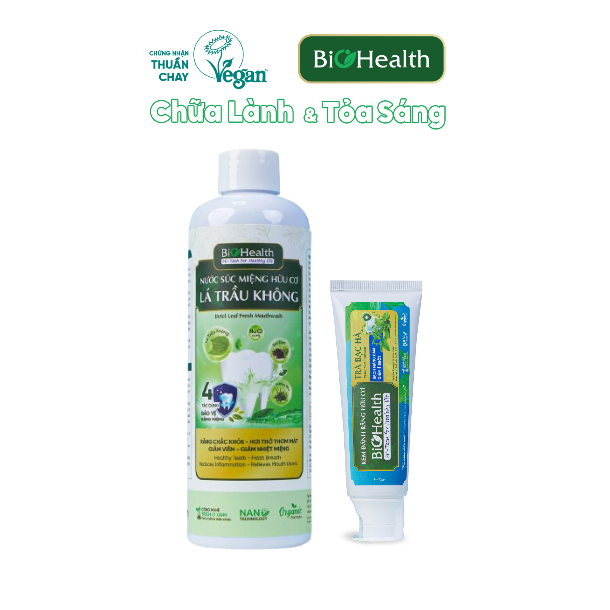 Combo được thiết kế cho người răng – nướu nhạy cảm, hay ê buốt, cần một giải pháp làm sạch mảng bám nhưng vẫn êm dịu và thơm mát bền lâu. Sự kết hợp giữa kem đánh răng Trà Bạc Hà và nước súc miệng Lá Trầu Không hướng tới trải nghiệm thuần chay, an toàn, lành tính, phù hợp dùng hằng ngày cho cả gia đình.
