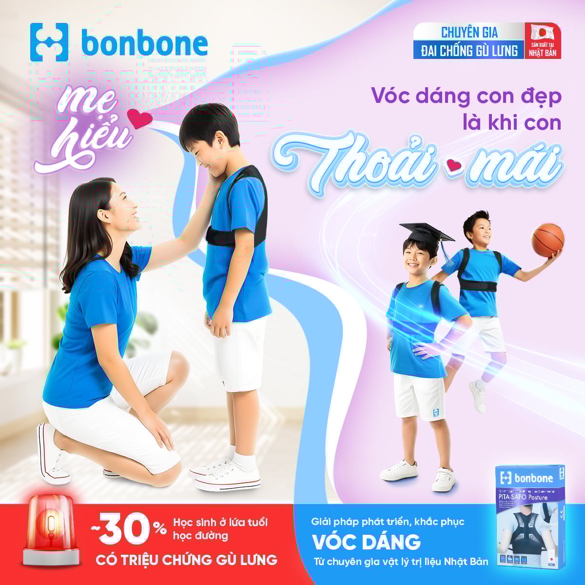 Gù lưng không chỉ gây ảnh hưởng đến vận động, suy giảm chất lượng cuộc sống mà còn khiến người bệnh cảm thấy tự ti về ngoại hình của mình. Thấu hiểu điều này, bonbone mang đến giải pháp chống gù lưng toàn diện với đai Pita-Sapo Posture. Đai chống gù lưng Pita Sapo giúp duy trì tư thế đẹp cải thiện gù lưng, mà không gây cản trở hoạt động khi học tập & sinh hoạt hàng ngày.
