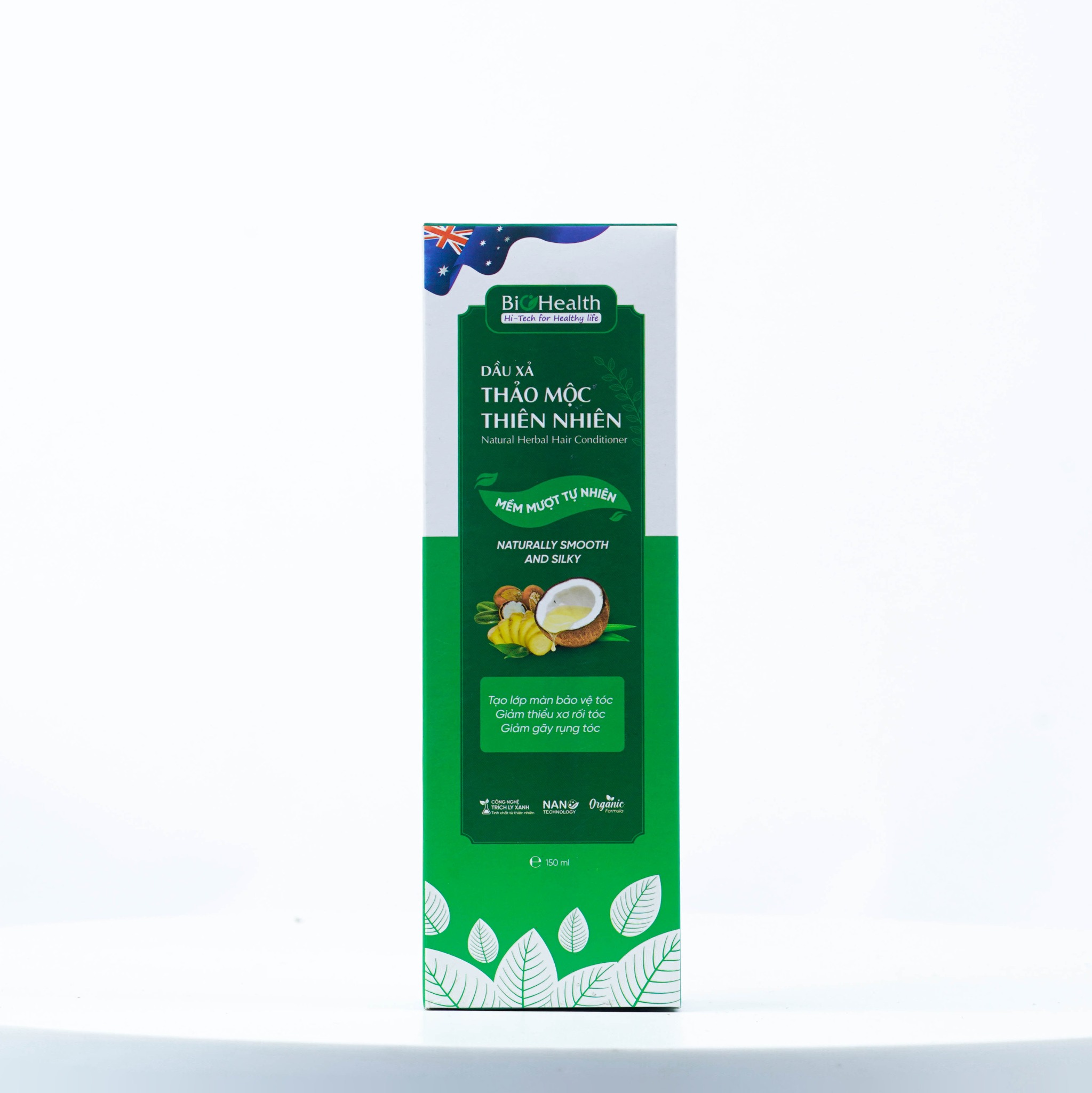 Dầu xả thảo mộc thiên nhiên BioHealth có thành phần chính từ dầu dừa thiên nhiên, nuôi dưỡng mái tóc suôn mượt và bóng khỏe. Điểm nổi bật của sản phẩm đó chính là sự kết hợp của bộ ba dưỡng ẩm và chống oxy hóa từ thiên nhiên là dầu dừa, bơ hạt mỡ và chiết xuất gừng, giúp cung cấp lượng lớn các khoáng chất, vitamin E, vitamin K thẩm thấu sâu vào nang tóc, đồng thời bảo vệ tóc trước tác hại từ ánh sáng mặt trời.