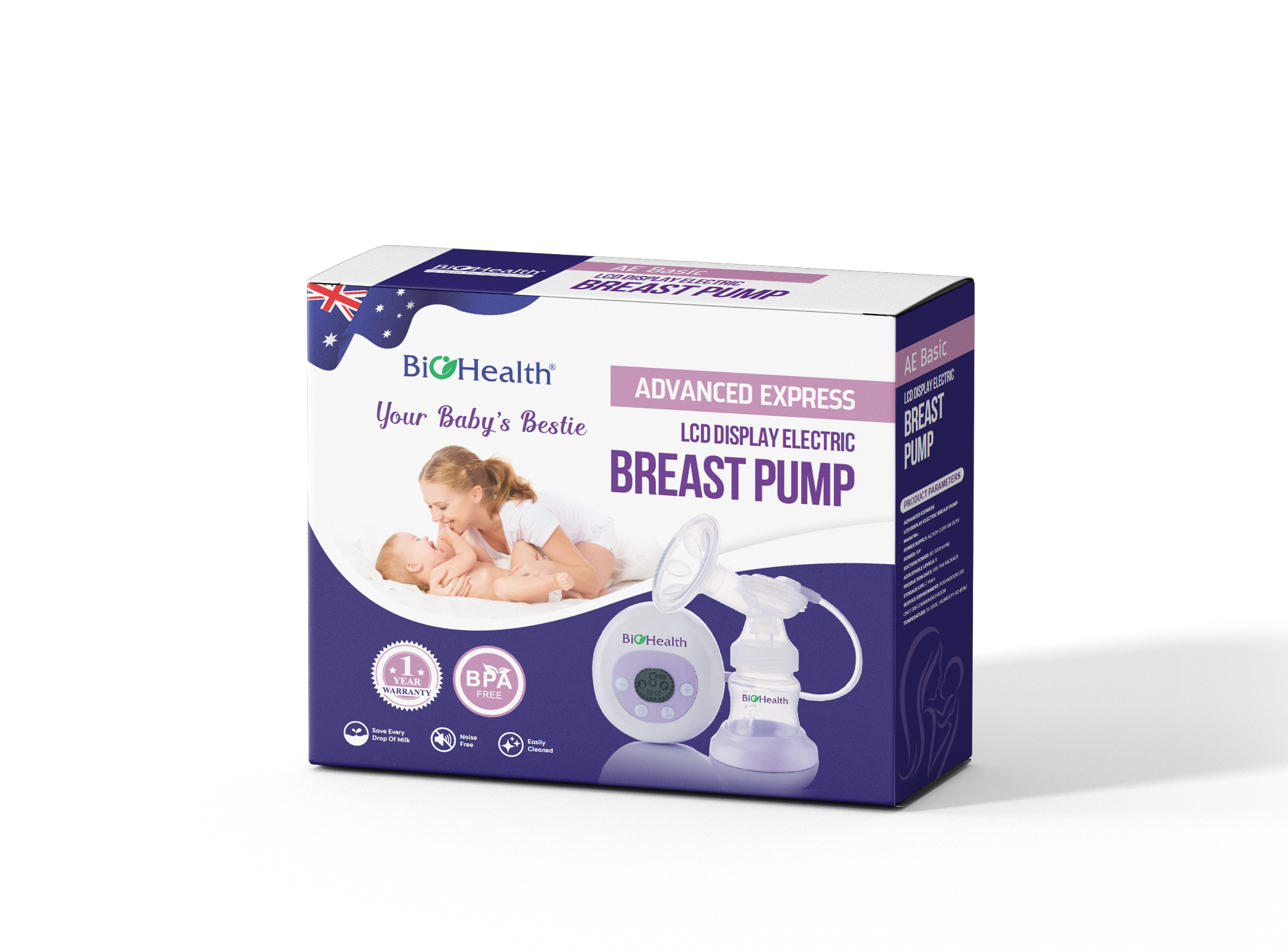 Máy hút sữa điện đơn BioHealth AE Basic thiết kế hiện đại, gọn nhẹ, dùng đơn giản, trợ thủ đắc lực hỗ trợ quá trình nuôi con bằng sữa mẹ an toàn, hiệu quả.