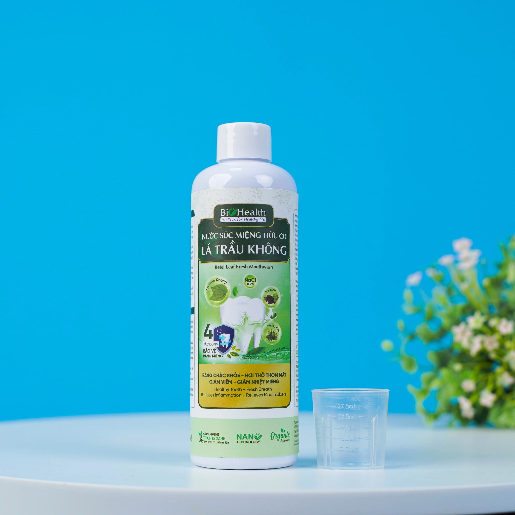 Nước súc miệng hữu cơ Lá Trầu Không BioHealth là giải pháp hữu cơ an toàn & lành tính cho sức khỏe răng miệng của bạn, với chiết xuất lá trầu không nổi bật nhờ đặc tính kháng khuẩn và chống viêm. Kết hợp với trà đen giàu polyphenol và tanin, sản phẩm giúp ngăn chặn vi khuẩn gây sâu răng và hôi miệng hiệu quả.